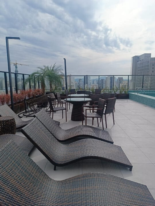 Com uma área privativa de 32m² e uma sacada que proporciona